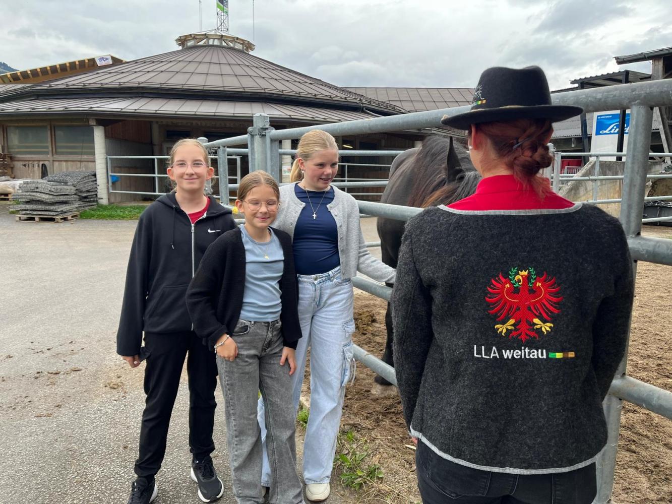 Die „Offene Schultür in der Weitau“ stand am Freitag, den 18. Oktober für uns, über 20 interessierte Mädchen und Buben der dritten Klassen, auf dem Programm. Von den Schülern und Schülerinnen der Schule wurden wir durch das Haus, die Werkstätten und Ställe geführt und konnten einen Einblick in die Bereiche Hauswirtschaft, Landwirtschaft und Pferdewirtschaft bekommen. Wir waren mit großer Aufmerksamkeit dabei und hatten auch viele Fragen, die uns sehr zufriedenstellend beantwortet wurden. Viele von uns werden wohl den Weg nach St. Johann finden …