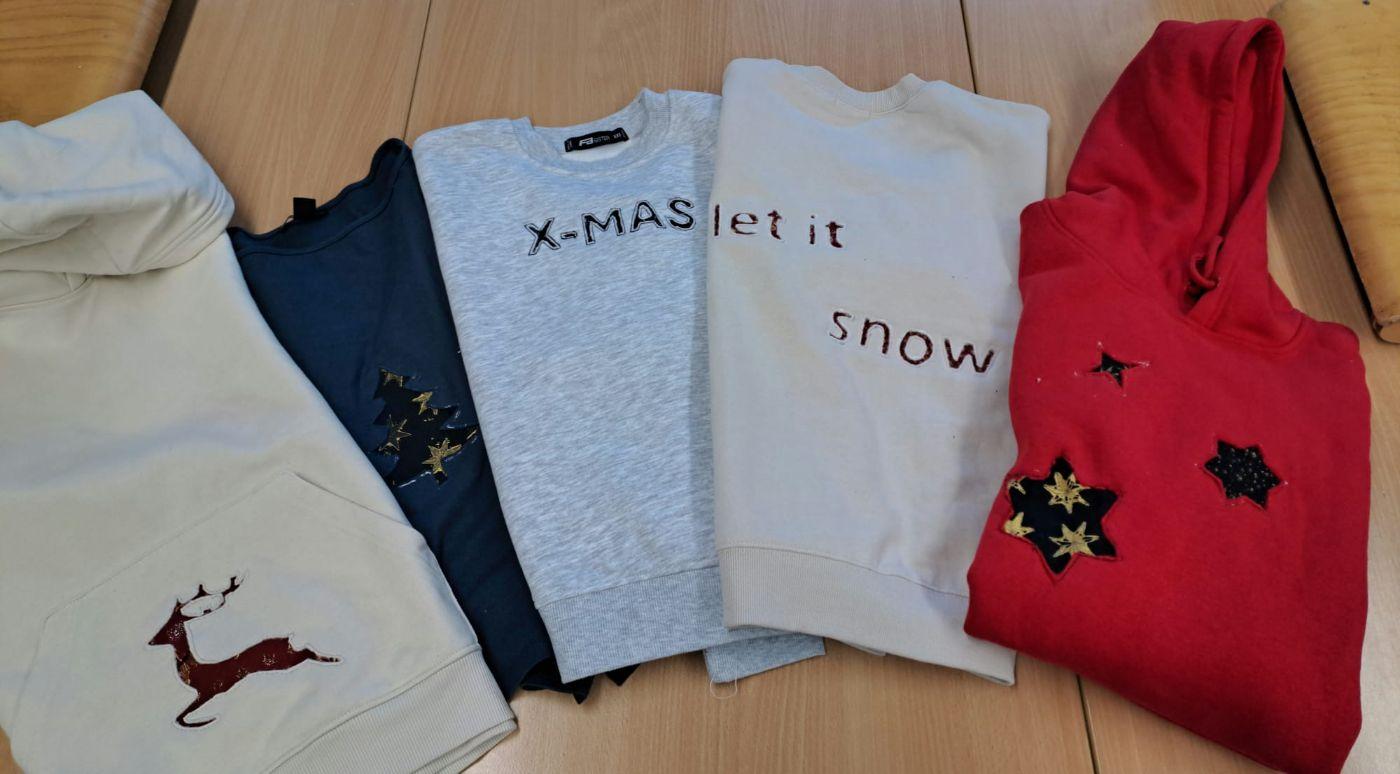 Weihnachtliche Pullover von Alexandra Oberkalmsteiner 17. Dezember 2025 Frohe Weihnachten - wünscht die 4c Klasse, die weihnachtliche Pullover verschönerte und eine spezielle Nähtechnik hierbei anwendete! Unterstützung hatten sie durch die Werklehrerin Frau Klingler! Allen erholsame Weihnachten!